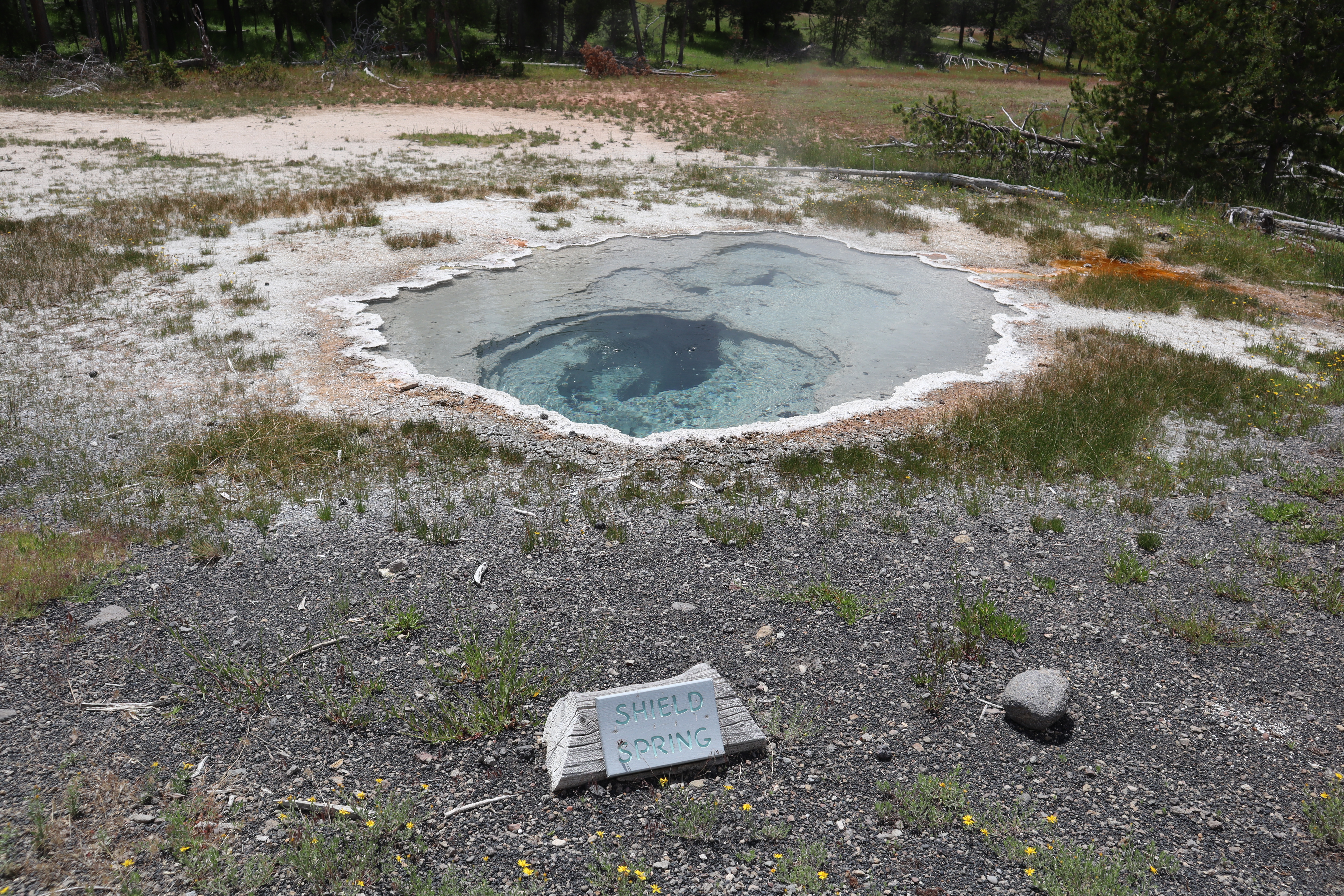 From here, we continued driving to another famous spot in the park, Mammoth Hot springs. This was a crowded spot for good reason! The lower terrace of the hot springs was so unique and stunning we were in shock. This is a fairly quick stop but I’d say it’s a must see while visiting Yellowstone. From here, we continued around the northern loop and stopped at the Norris Geyser Basin area to see more beautiful geysers and springs. This area is similar to the old faithful area, with boardwalks that lead you to view points of the various geysers and springs.