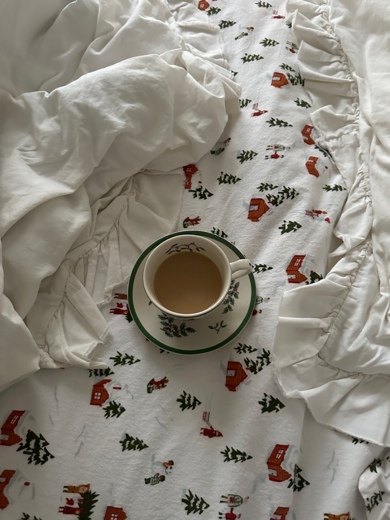 festive sheets in the bedroom