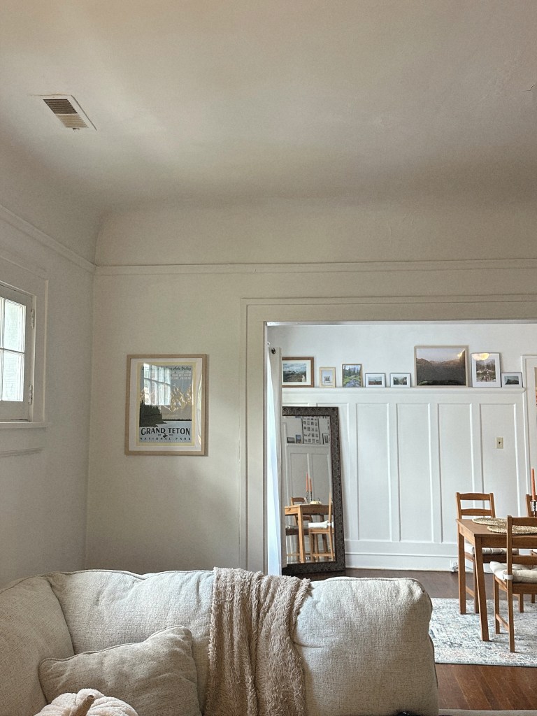 - Add cozy layers. I did purchase new pillows for the couch, and this purchase had been a long time coming! I’ve been searching for an accent color I liked with our neutral couch and sage green felt like the right color. Pro tip–find pillows with covers that are removable so you have the option to switch out the cover in the future!
