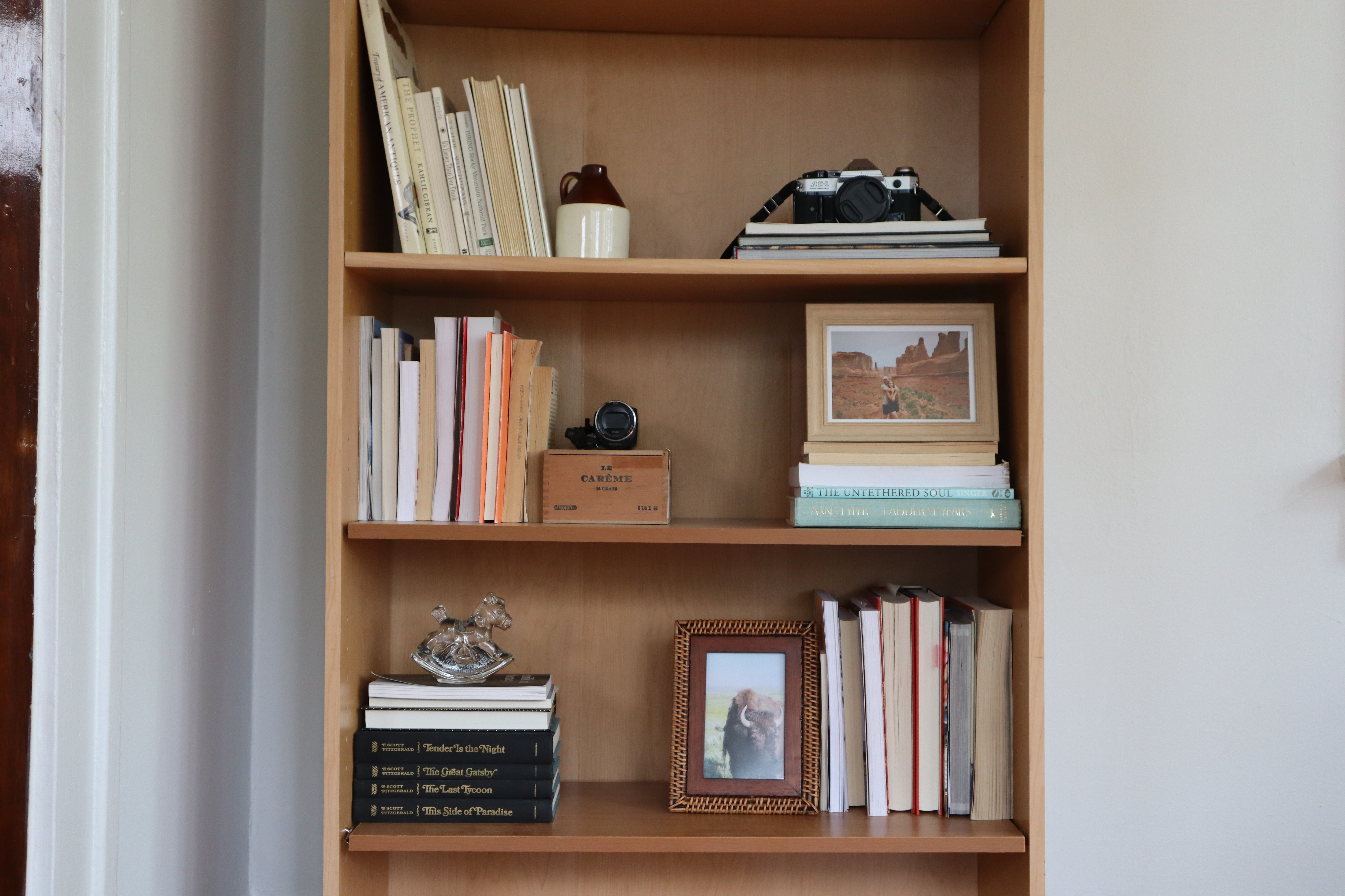 - Rearrange pieces in a new place. I love the shelf I have in our kitchen because it’s fun to change for the seasons! I recently placed some pieces on the shelf that used to be in other spots and it gave the kitchen a fresh look without having to buy something new.