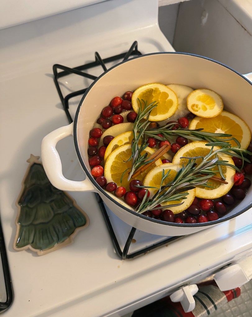 I wanted to share some simple steps for two of my favorite “diy” elements around this time of year, an orange garland and a simmer pot.